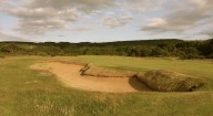 The view of the huge fairway bunker that sits in the left-hand rough on the 15th hole. Continue reading Hole 15