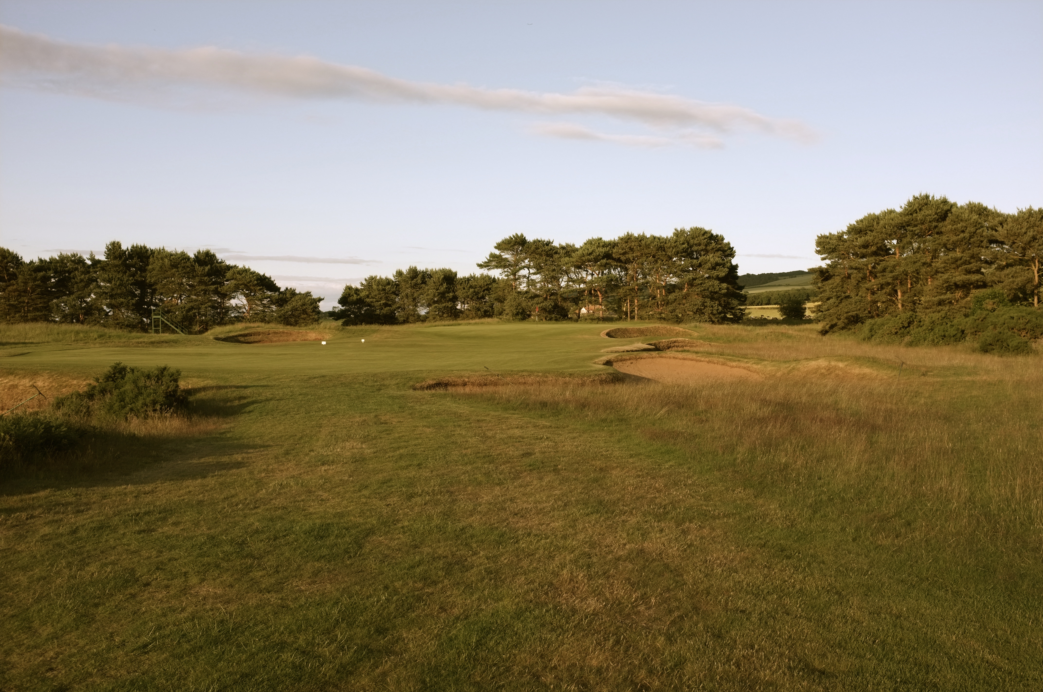 The view from the start of the 17th fairway, showing four of the six bunkers that line both sides of the hole. Continue reading Hole 17